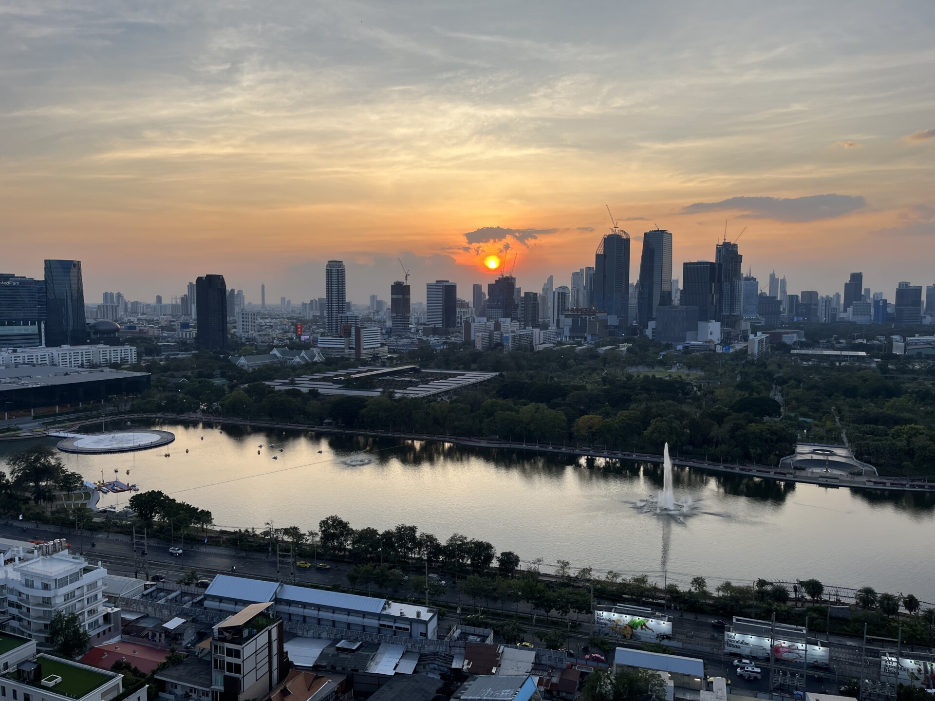 Wir wollten irgendein Tempelgelände betrachten und fuhren etwa 21 Minuten mit der Metro nach Sanam Chai. Michu trug die Maske und siehe da, funktioniert tatsächlich. Keine Schmerzen mehr und der Hals blieb normal. Als Test hat er die Maske natürlich jeweils immer wieder abgezogen – Katastrophe.. In Sanam Chai war der Vibe komplett anders als im Zentrum von Bangkok. Viel weniger Menschen, viel weniger los, alles weiter auseinander und der Gestank war auch next Level. Wir liefen Richtung Tempelanlage, die jedoch schon geschlossen hatte. So besuchten wir einen Park daneben, welcher sehr schön war.
