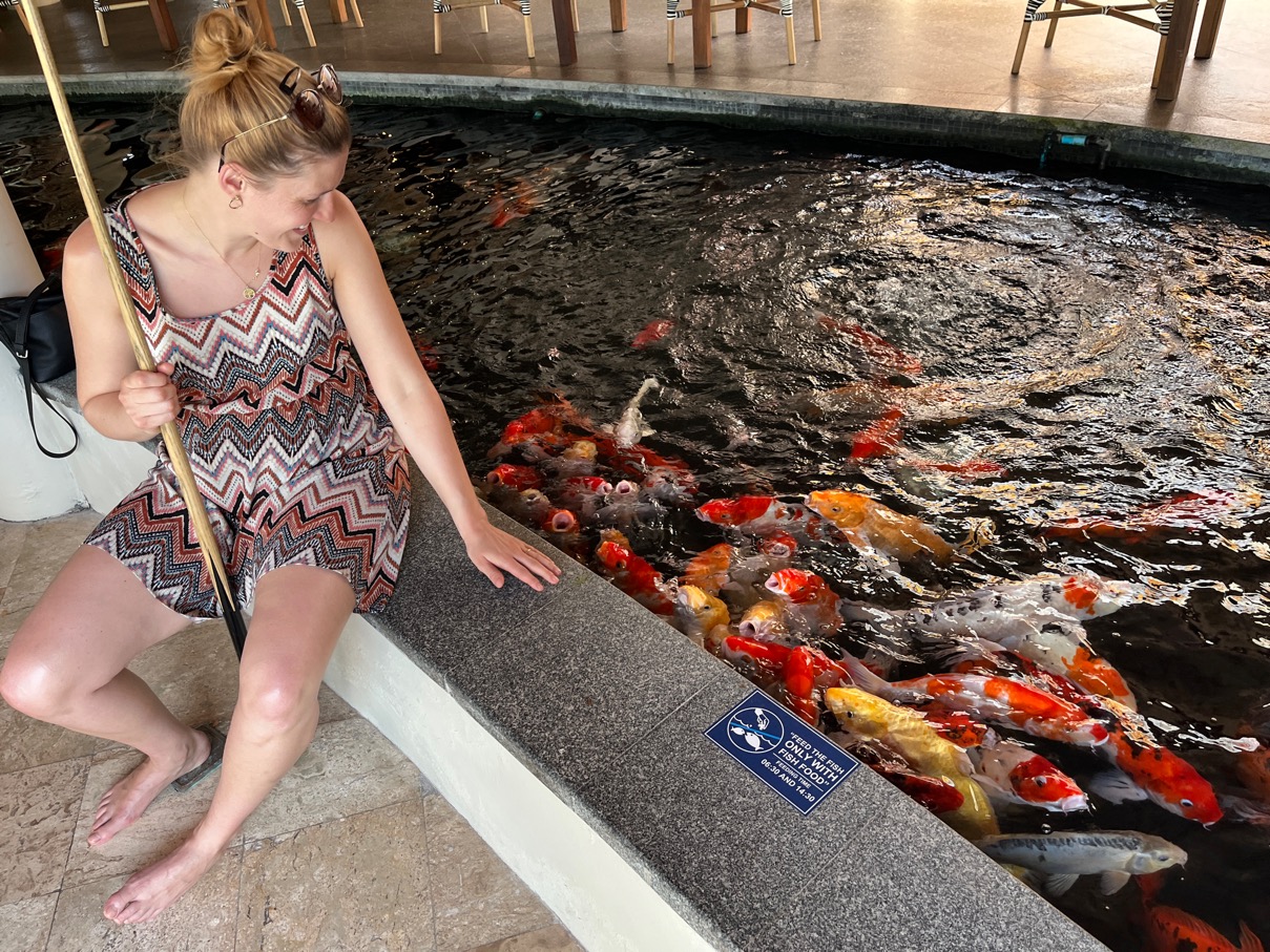 Das Frühstücksbuffet ist das beste, was wir bisher je gesehen haben. Riesige Auswahl an allem. Frisch, lecker und für alle etwas da. Das coole, in der Frühstücks-Lobby gibt es einen langen indoor Teich mit vielen Koi Fischen drin. Du sitzt da quasi neben den Fischen, welche sich ständig zeigen, weil sie Futter erwarten.